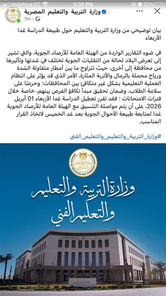 خطاب للسادة أولياء الامور خاص بمواعيد شهر رمضان
